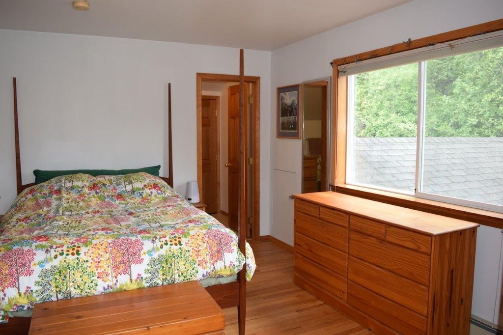 Don’t miss your chance at this splendor in Bonnie Brae. Offering 1,808 sqft, large bay windows allowing in ample natural light, fir & hemlock wood doors & trim, open concept floor plan, 1BD/1BA downstairs, with 3BD/2BA upstairs, & tons of storage. The master suite has hard wood floors, double closets, built-ins, & on suite full bath. The sliding glass door off the dining room leads to large back deck & garden space. Views of surrounding mountains. Fresh exterior paint & oil tank replaced w/i last few years.